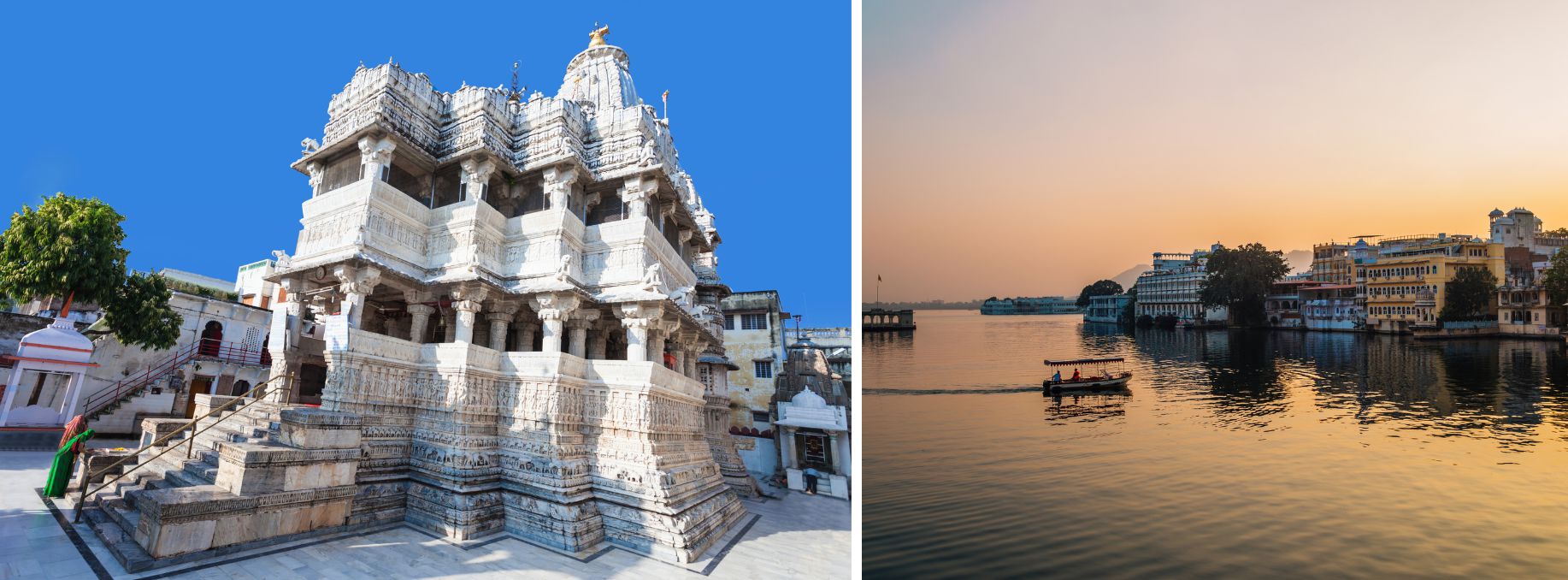 This afternoon is at leisure to explore as you please. Grab a tea at a cafe or do some exploring on foot with your camera. In the evening, climb aboard for a sunset boat ride to explore Lake Pichola.